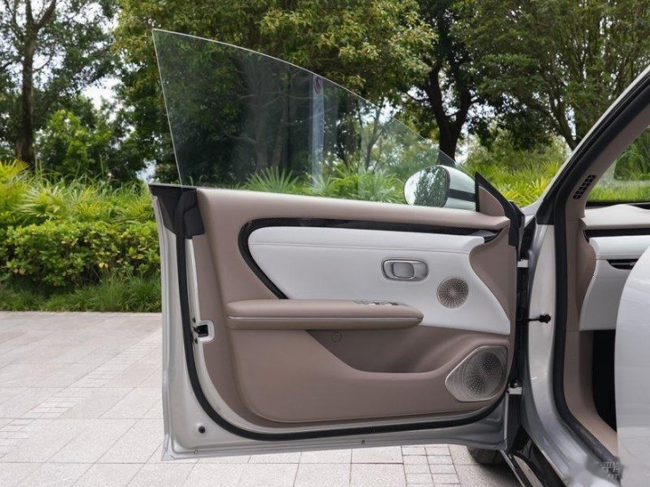 车身侧面采用溜背式造型,配有无边框车门、无边框后视镜、隐藏式水切、半隐藏式门把手、19英寸五辐花瓣式轮毂等时尚设计,视觉效果非常高级。